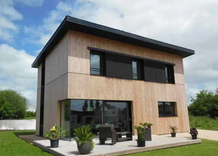 Le choix des matériaux a été pensé pour allier esthétique et durabilité, avec une finition soignée qui souligne les lignes architecturales de la maison. L’association du bois naturel et des menuiseries sombres crée un contraste harmonieux, offrant un rendu à la fois design et intemporel.