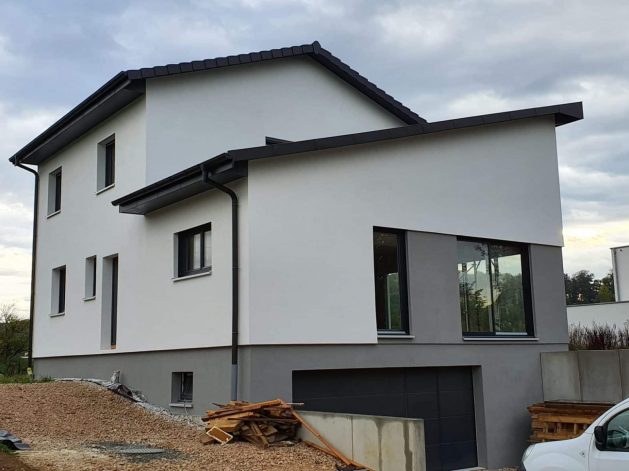 Le contraste entre l’enduit traditionnel et le bardage moderne apporte du caractère à l’ensemble, créant une esthétique élégante et dynamique. Les lignes épurées et les finitions soignées mettent en valeur les volumes et offrent un rendu résolument actuel.